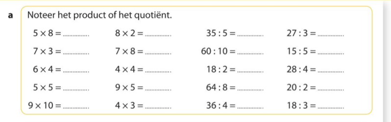 -> Herhaling van de gekende maal- en deeltafels. Dit moet vlot lukken!